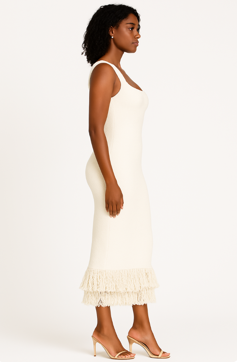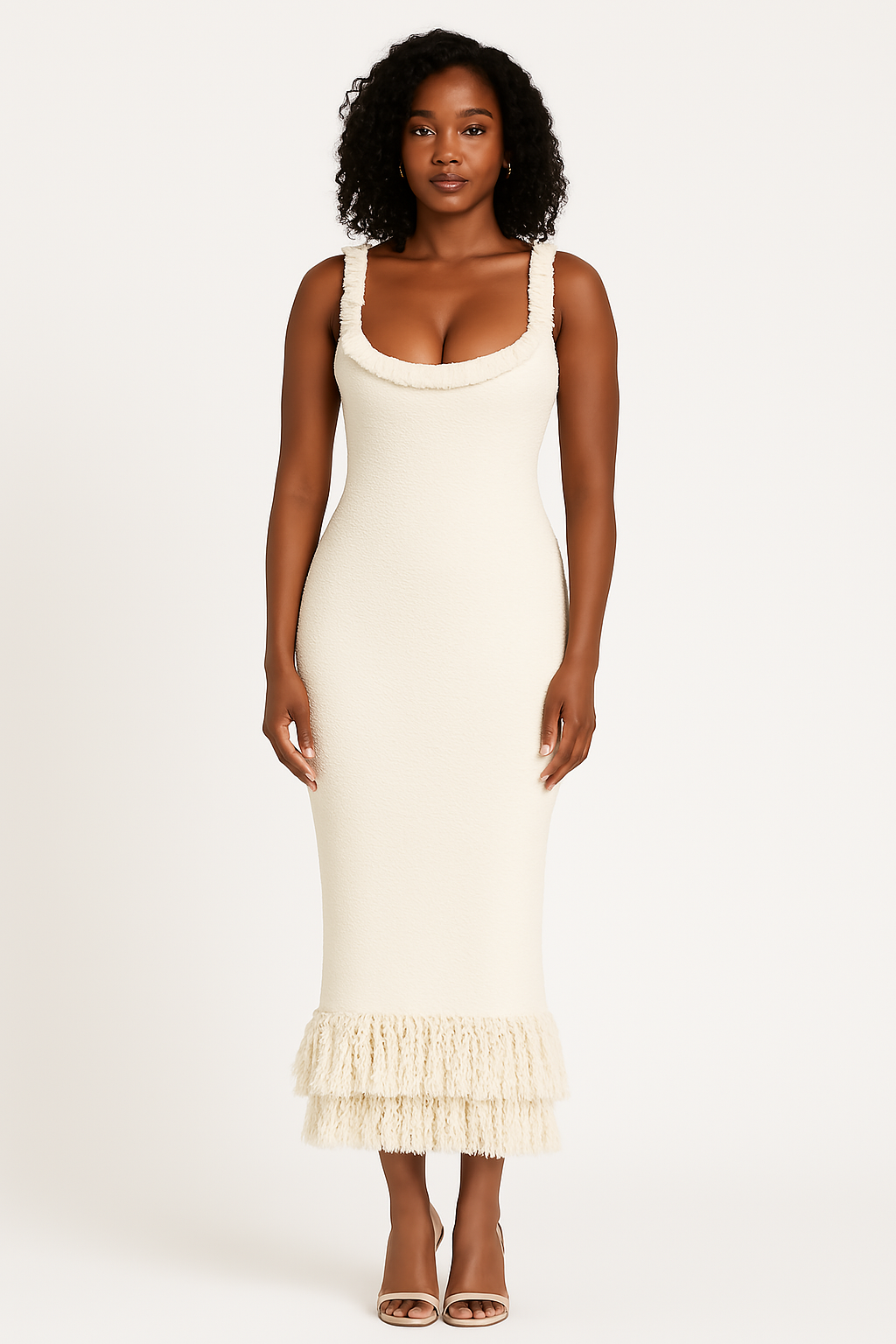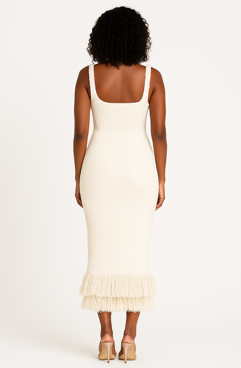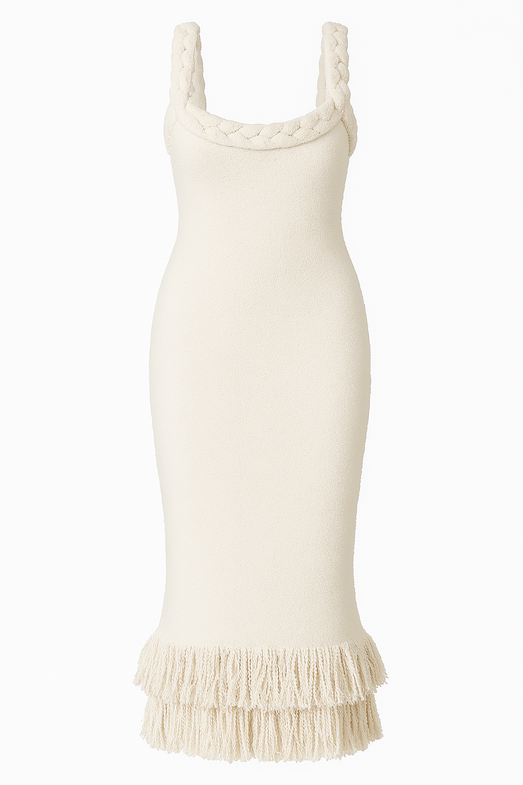 Boho-chic et résolument glamour, Kiara est une pièce statement. Son tricot fin épouse les courbes avec sensualité, tandis que ses franges dansent à chaque mouvement. Le détail tressé sur le col ajoute une touche d’artisanat raffinée. Un vrai bijou.