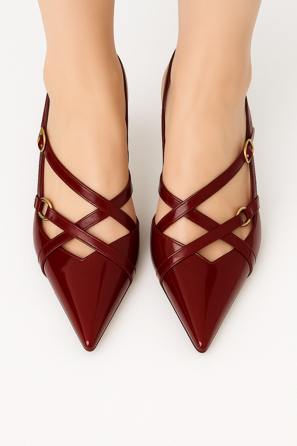 Classy et audacieux, Office revisite l’escarpin pour la boss en toi. Avec son bout ultra-pointu, son effet verni et ses brides croisées à boutons dorés, il impose un look affirmé. De la réunion à l’afterwork, il t’accompagne avec style et autorité.